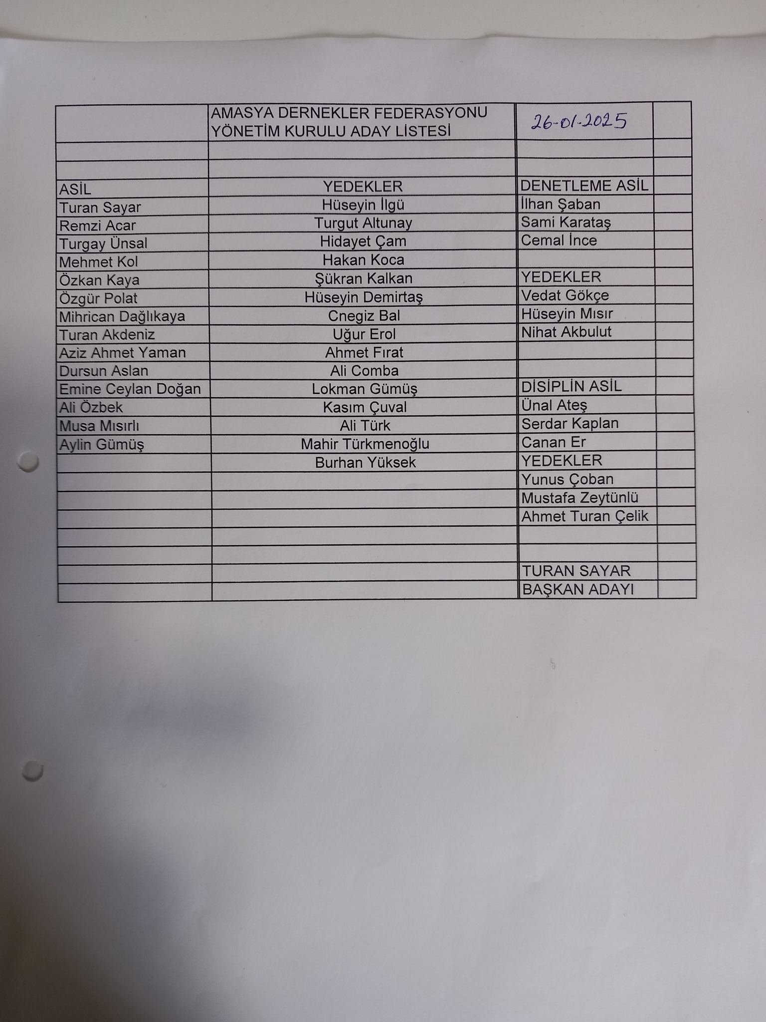 Kısa adı (ADEF)olan Amasya Dernekler Federasyonun 26.01.2025 Pazar günü Eyüpsultan Belediyesi Osmanlı Parkı Nikah salonunda yapılan 8.Olağan genel kurulu toplantısında Divan Başkanı Aslan Sarıkaya,İsmail Uygun ve Tuncay Altunkaya'dan oluşan divan heyetince yürütülen toplantıda Genel başkanımız Turan Sayar’ın açılış konuşmasıyla,Saygı duruşu,İstiklal Marşımızın okunmasıyla devam eden kongrede karşılıklı saygı,sevgi,birlik,beraberlik ve hoşgörü anlayışının egemen olduğu görüldü.