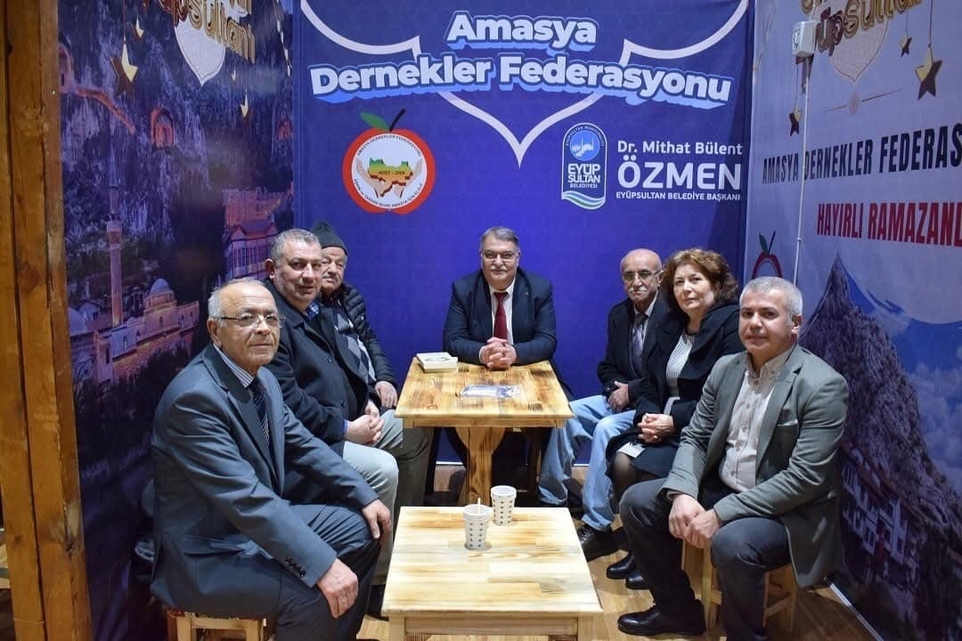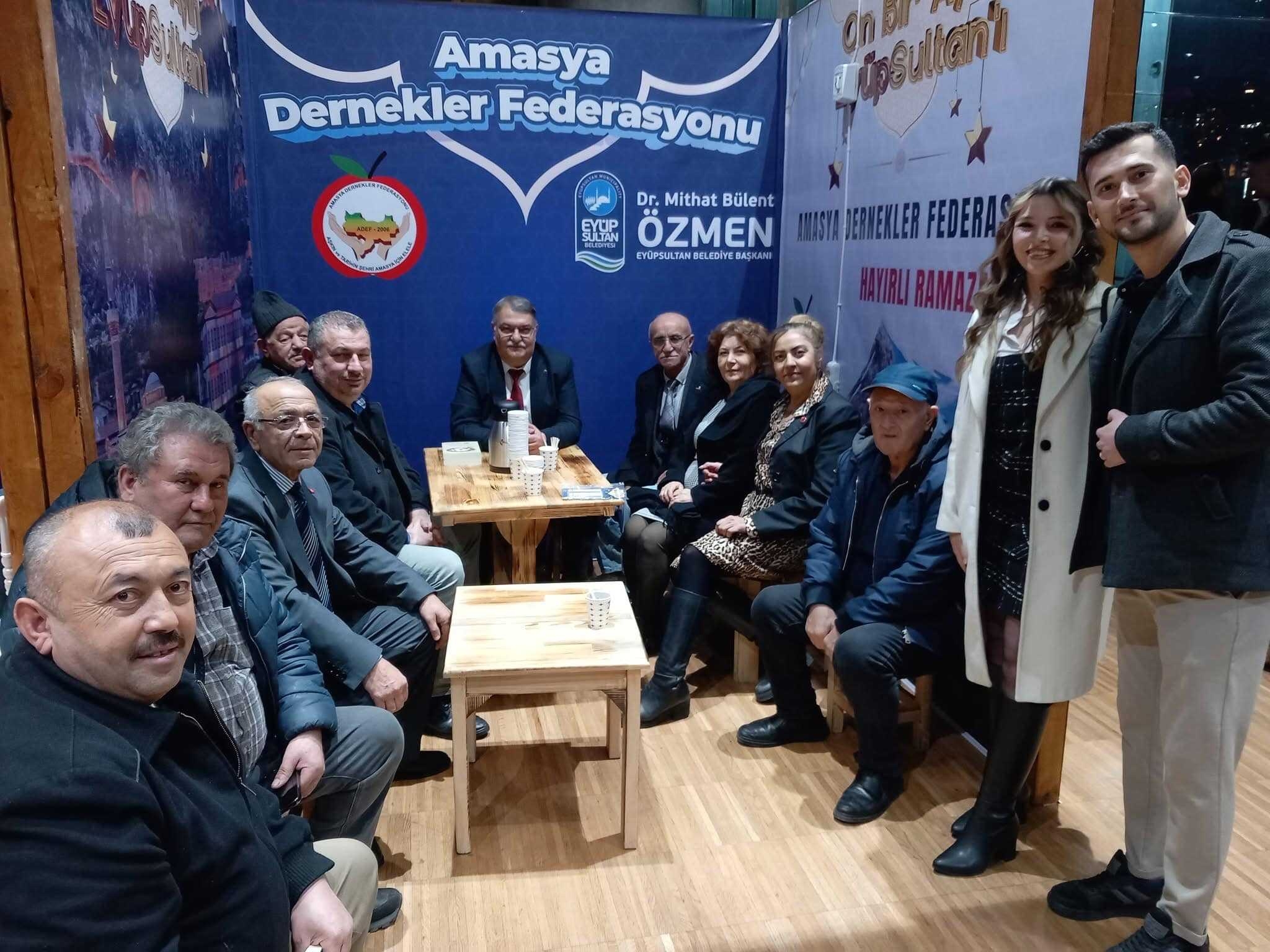 Eyüpsultan Belediyesince kültür merkezinde düzenlenen stant açılışına ve ramazan iftar programına Amasya dernekler federasyon genel başkanımız Turan Sayar ve yönetim kurulu heyetimiz,üye derneklerimiz ile diğer il yöre dernekleriyle birlikte katıldık.Eyüpsultan Belediye Başkanımız Sn. Dr.Mithat Bülent Özmen’in açılış konuşmasıyla bugün başlayan etkinlik programı bir ay boyunca devam edecek ve her il dernekler federasyonu sırasıyla gece etkinliği düzenlenecektir.